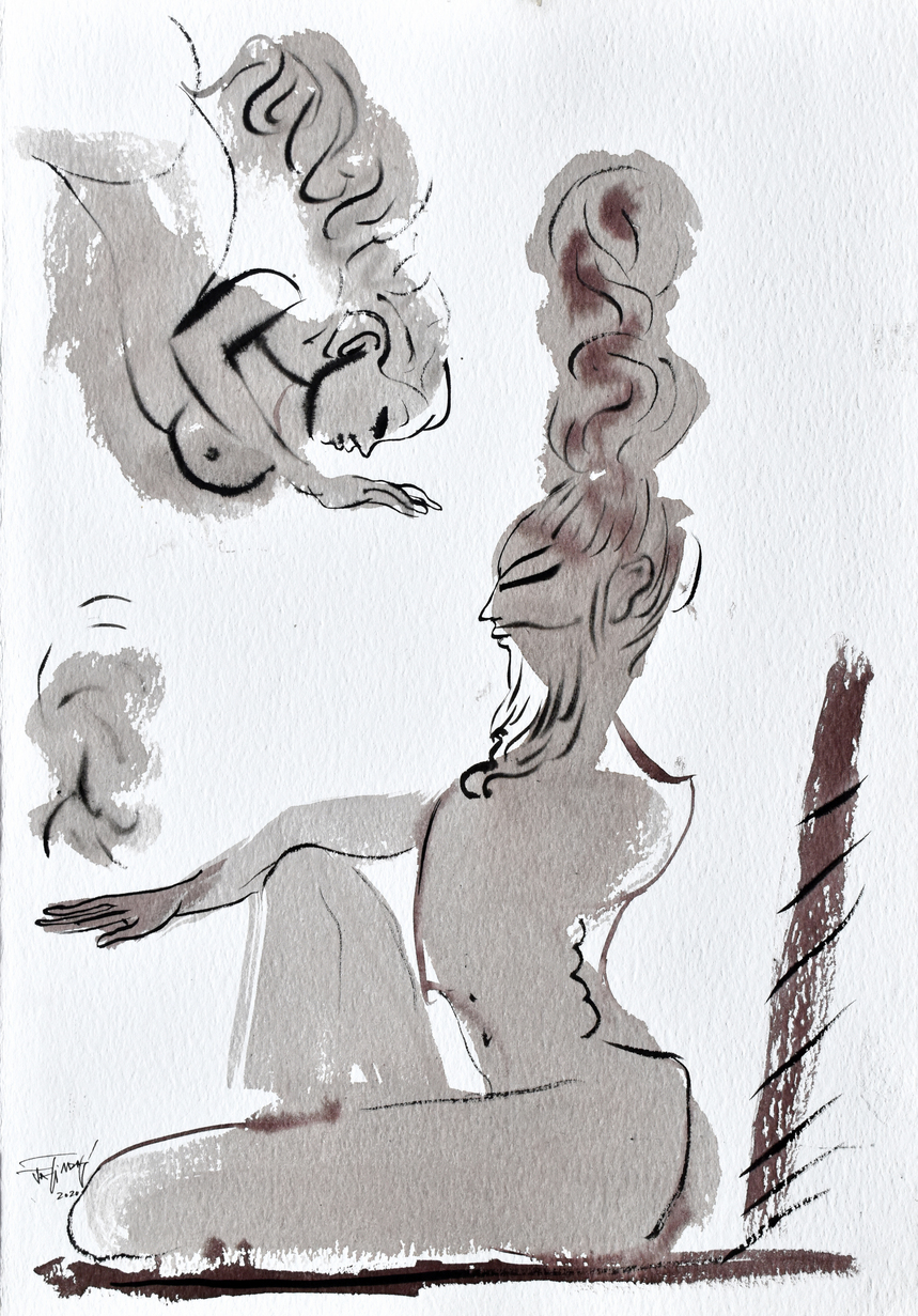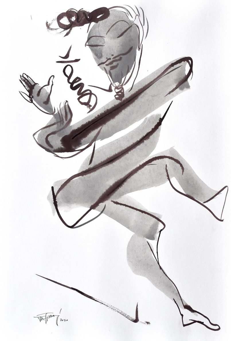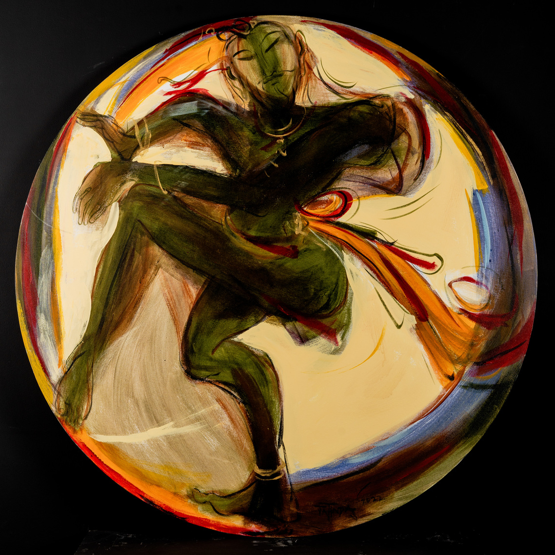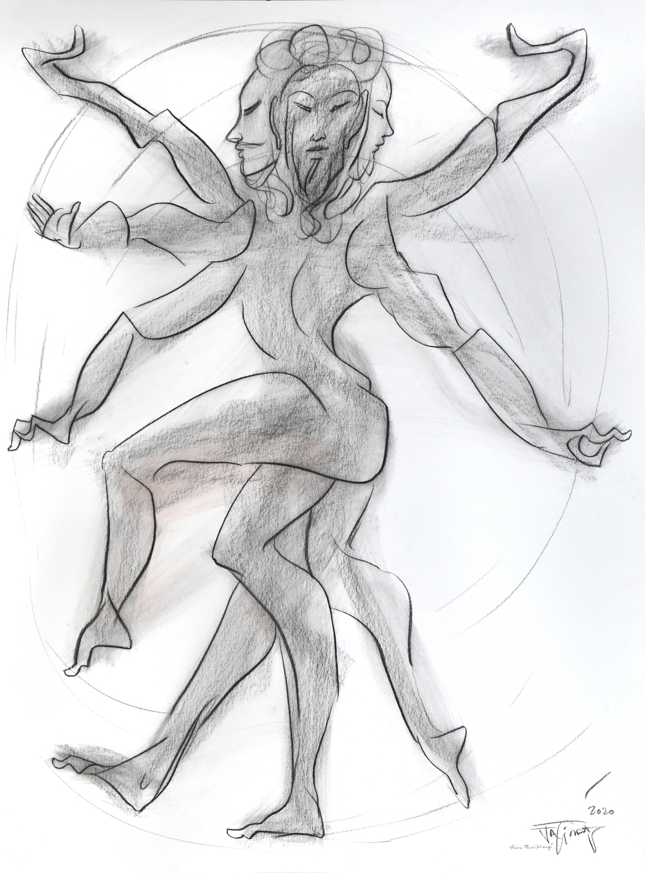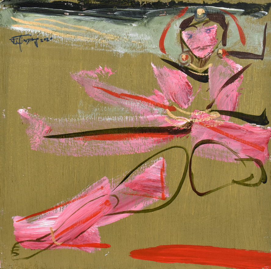 Das’s oeuvre primarily revolves around the human body’s movement and energy, capturing intricate relationships, emotions, and thoughts with minimal strokes and vibrant colours. In his conversation with Tarana Khubchandani, Jatin says, “I don’t paint my canvases, I sculpt them,” evident in his large canvases with a distinctive colour palette.