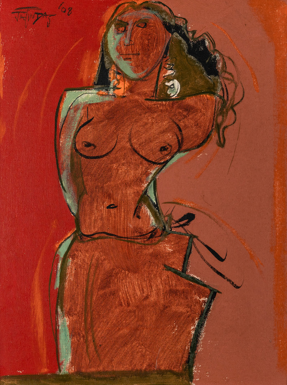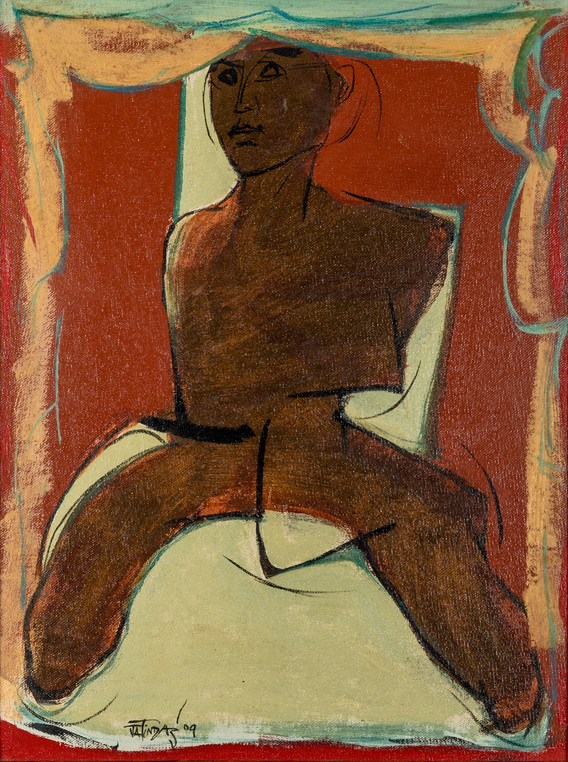 Renowned artist Jatin Das, born in 1941, Orissa, is a multifaceted creative force excelling in painting, sculpting, mural art, and poetry. An alumnus of JJ School of Art, mentored by Professor S.B. Palsikar, Das showcases his mastery through dynamic human figures and powerful strokes. His artistic journey began in 1962 at his art school’s gallery, marking the start of over 60 solo exhibitions and global recognition, including appearances at prestigious events like the Biennales in Paris (1971) and the Venice Art Exhibitions (1978).