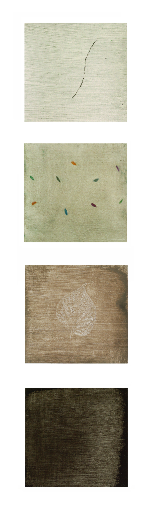 Blossom, Acrylic, Ink & Pencil on Arches Paper, 6.25 x 6.5 Inches each, Panel of 4, 2020