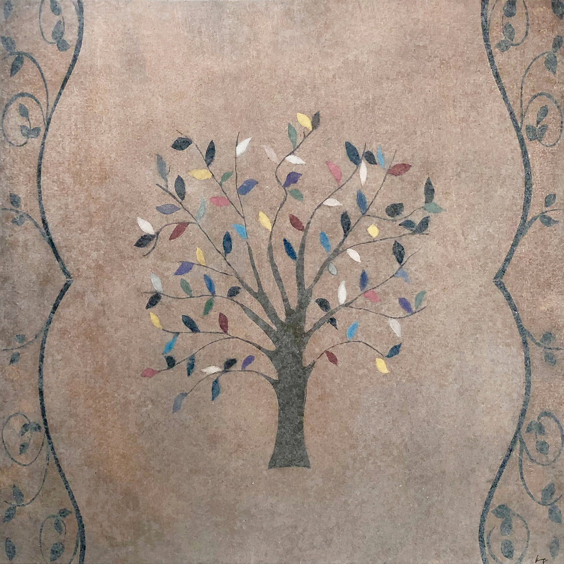 _Mother_, Acrylic with Ink, Pencil, Coffee and Tea Staining on Arches Paper, 17 x 17 Inches. 2019