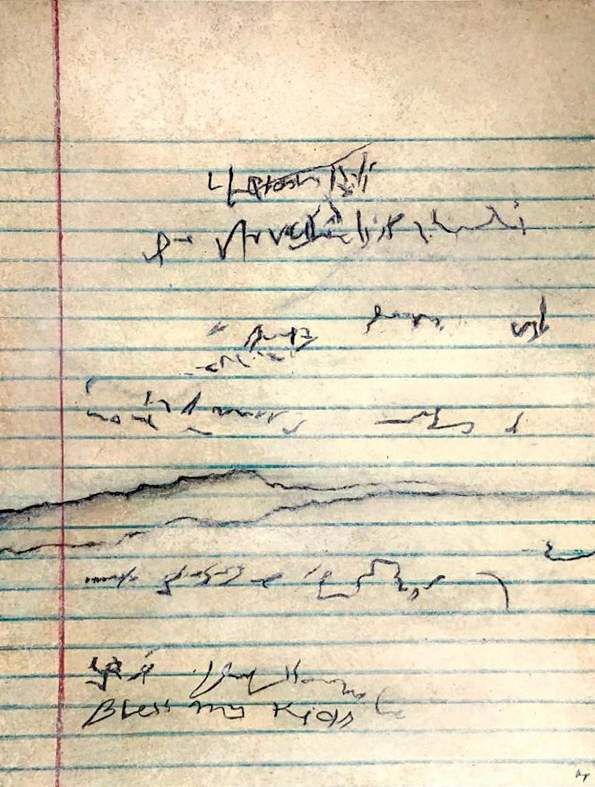 _Mother_s Note_, Acrylic with Ink, Pencil, Coffee and Tea Staining on Arches Paper, 20.5 x 15.5 Inches, 2019
