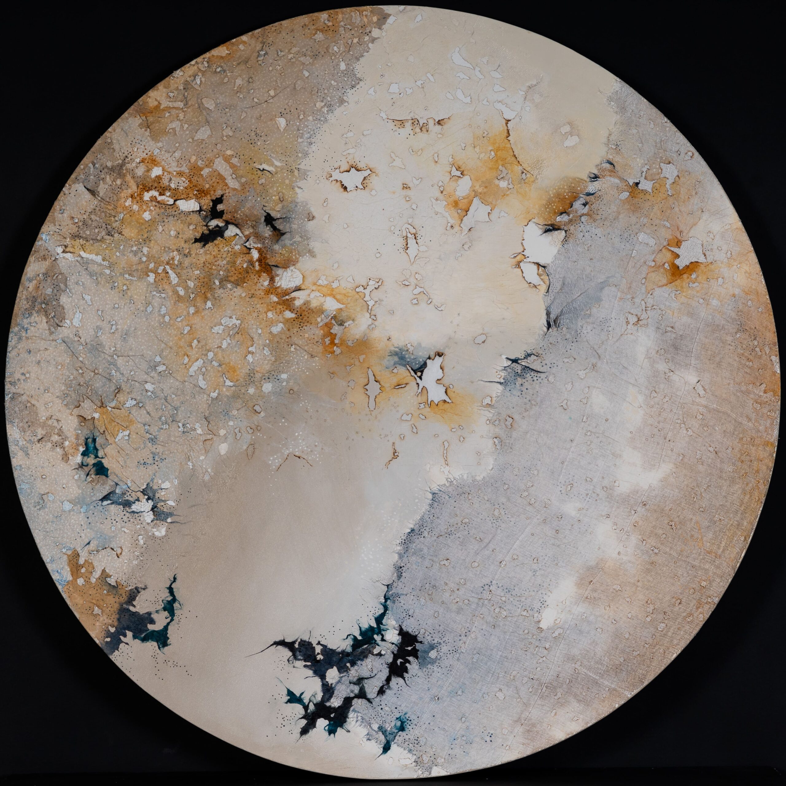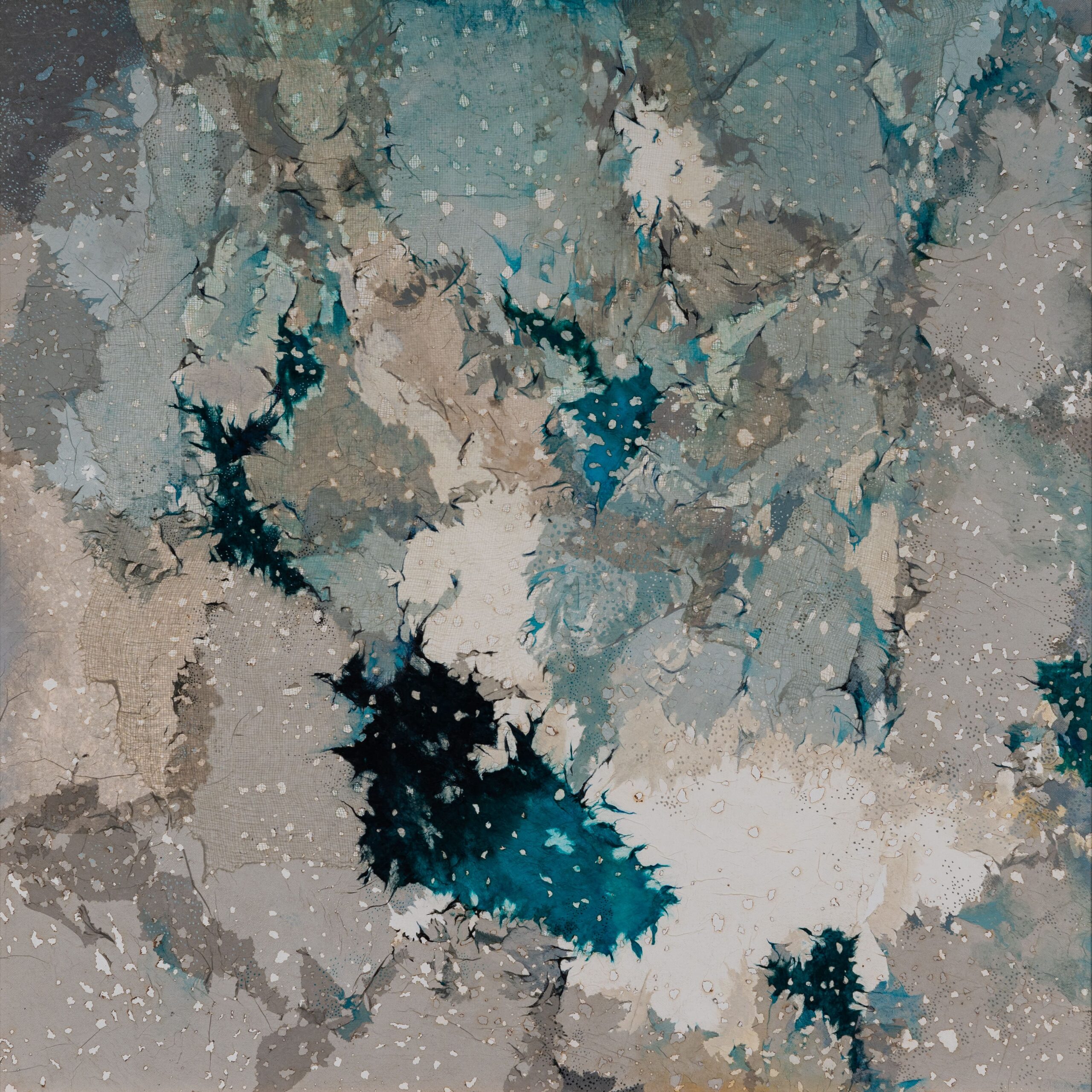 The bane of the abstract concept revolves around “the whole existence” of searching for the supreme divine in this ever-growing continuous creativity – Mother Nature; from free-flowing rivers to majestic mountains to the delicate flowers and the holy sunshine. From this, the artist asks another question, “Who is this knower? And Who am I?”, the answer to which are in the details of her paintings. The artist arrives at a cosmos of her artistic expression between formlessness and its ability of metamorphosize.