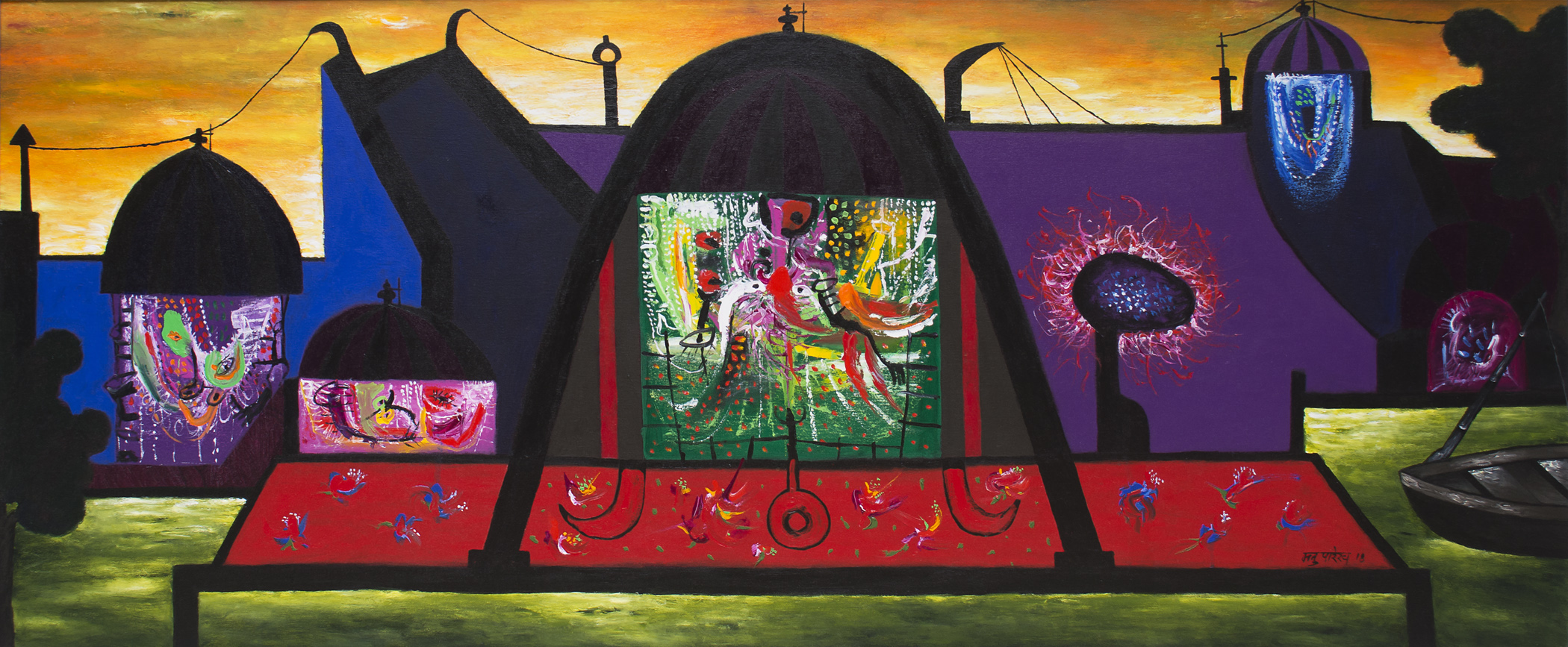 Born in 1939, Ahmedabad, Gujarat, Manu Parekh completed a Diploma in Drawing and Painting from J.J. School of Art, Mumbai,1962. His career spans across diversity of form and material. Parekh’s canvases consume hue, space and figuration.