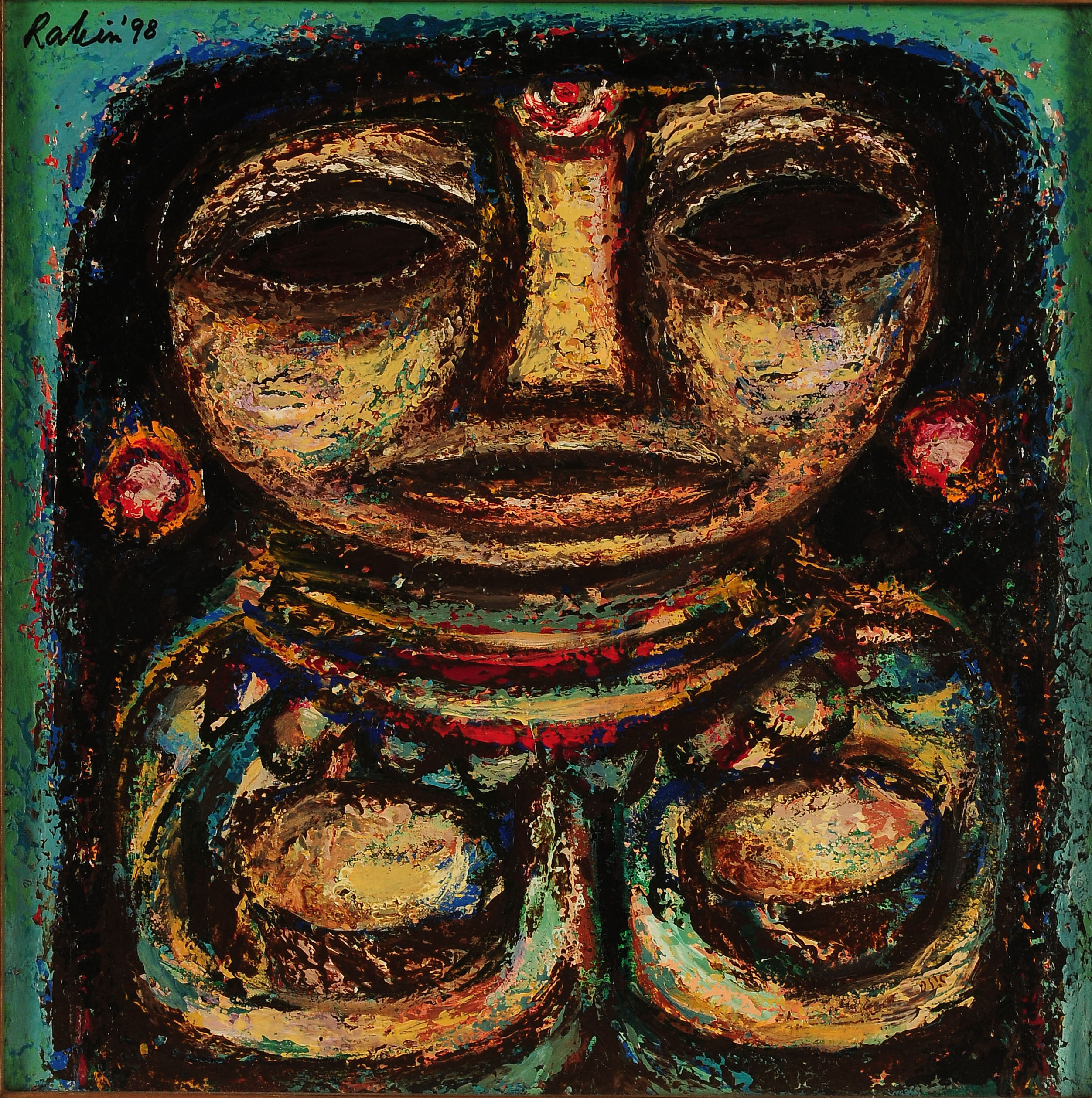 Rabin Mondal born in Kolkata, 1929 (- 2019) was a renowned Indian painter who exploited his grotesque experiences as a youngster during tumultuous times to express his inner turmoil. He graduated with a Diploma in Fine Arts from Vidyasagar Art School, 1949 and co-founded the group “Calcutta Painters”.