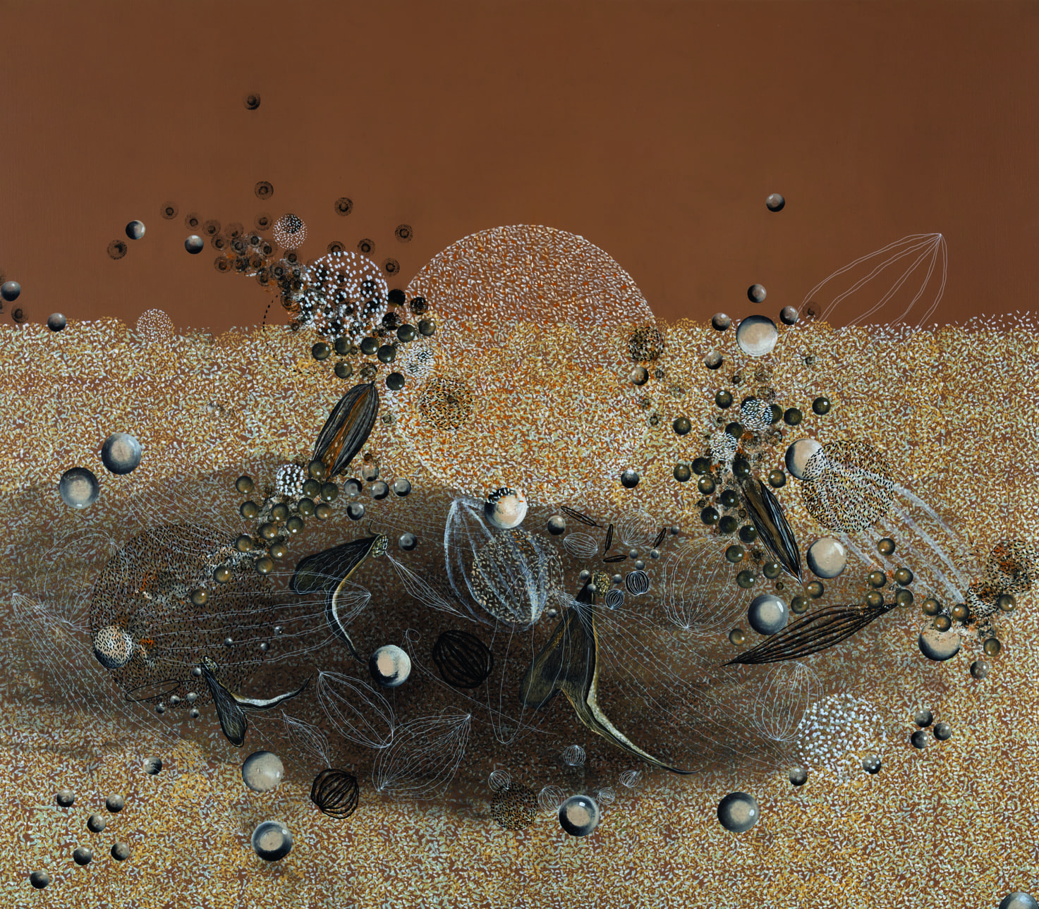 Revati Sharma Singh is an autodidact artist who mainly works with abstraction representing social subjects with assemblages of ceramic, cast metal, handmade silver, terracotta, tapestry, embroidery and paint. Central to her work, is exploring the nature of interaction within the human society.