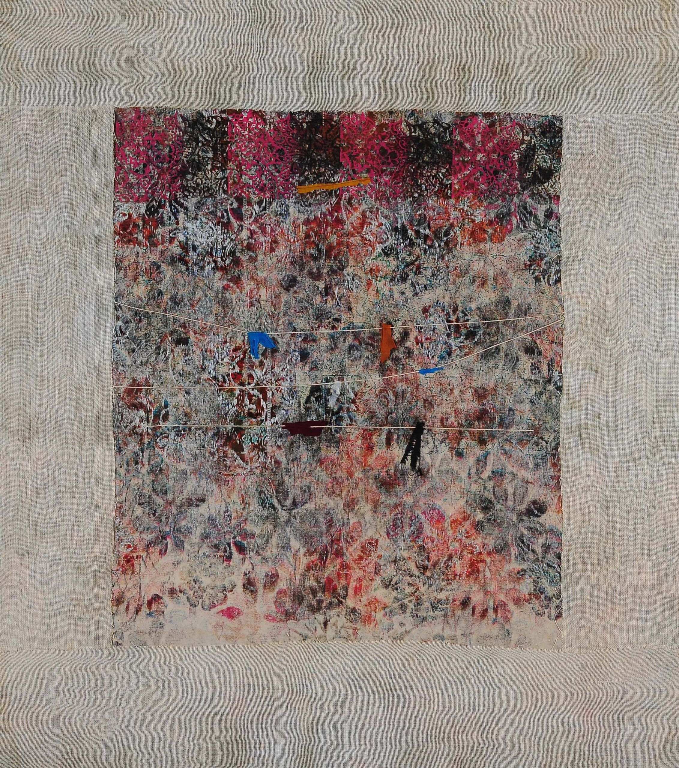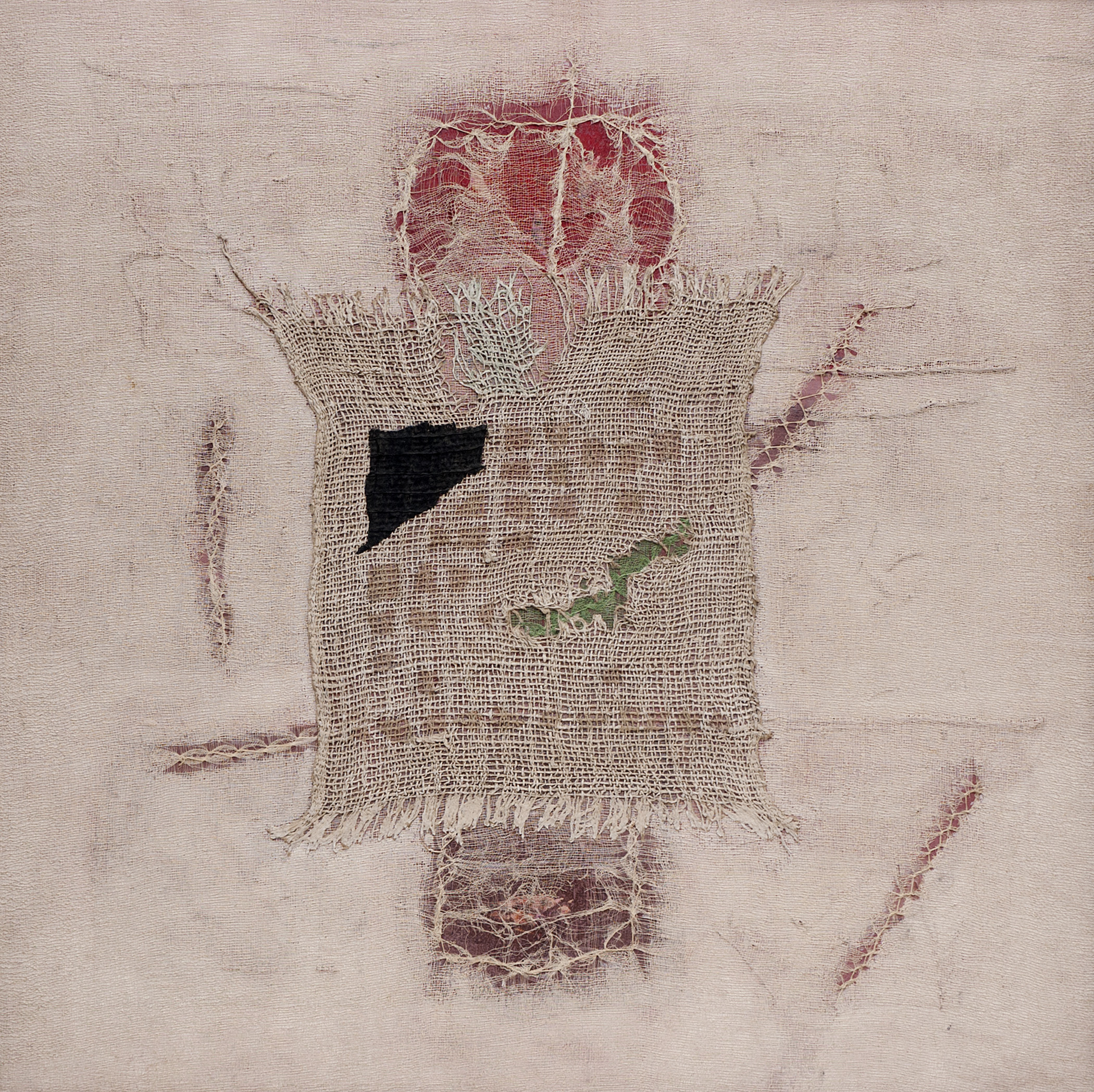 Vasant Wankhede (1936-2019) crafted a visual language dedicated to silence, inviting an attentive exploration of human vision. His paintings metamorphose rags into vibrant hues and stains into aesthetic realms. Rather than concealing wounds, bandages reveal the inner luminosity of the artist’s emotions. Marks may linger amidst scratches or intertwined with loose threads, serving as solitary reminiscences.